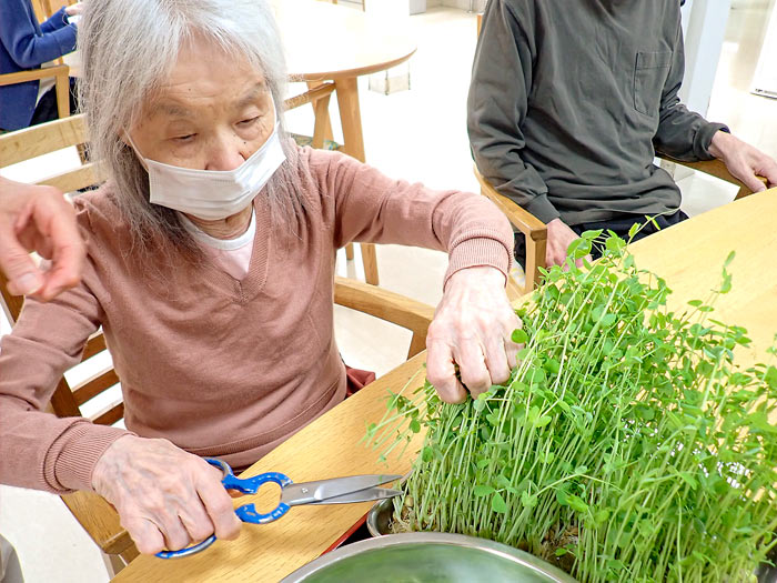 豆苗の再生栽培に成功!! 楽しい収穫風景