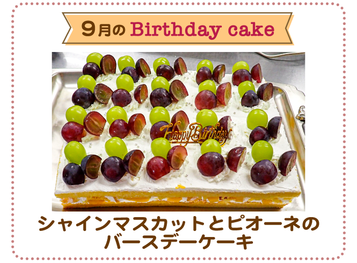 旬のフルーツ・シャインマスカットとピオーネで豪華に飾りました。